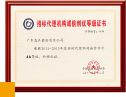 招標(biāo)代理機(jī)構(gòu)誠信創(chuàng)優(yōu) 4A 等級(jí)