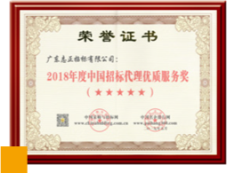 2018 年度中國招標(biāo)代理優(yōu)質(zhì)服務(wù)獎(jiǎng)(五星)